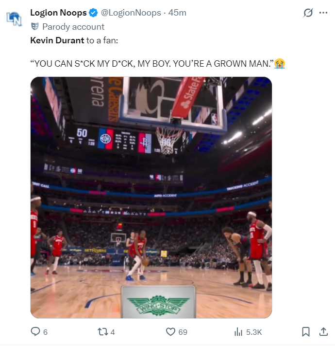 第二节杜兰特在罚球命中后他朝着看台的一位活塞球迷喷垃圾话,因为话太脏我们就不翻译了,杜兰特无愧是垃圾话之王。
